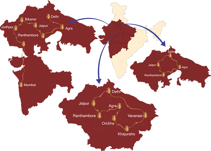 Cover big ticket attactions like the Taj Mahal, go on a thrilling game drive in Ranthambore, enjoy sundowners on the sand dunes of Bikaner, explore fairytale palaces & forts in Jaipur, Jodhpur & Udaipur, revel in the glow of architectural marvels at UNESCO World Heritage site of Khajuraho or seek nirvana in the holy city of Varanasi. The choice to handpick each of these adventures is yours!